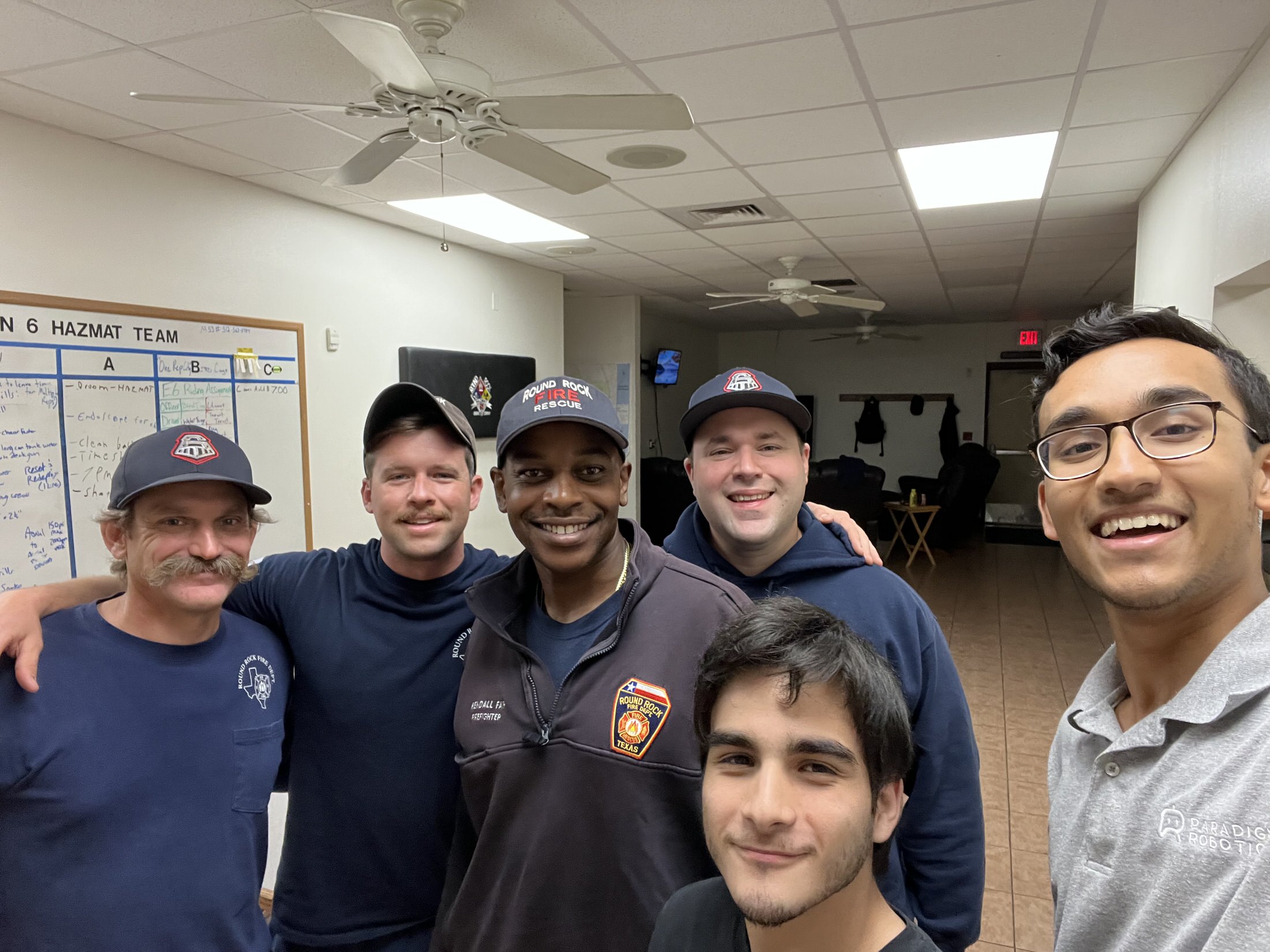 Siddharth Thakur with members of the Round Rock Fire Department. Photo courtesy Siddharth Thakur.